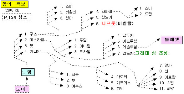 ① 노아 → ② 함 → ③ 구스 → ④ 니므롯